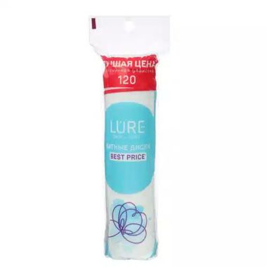 LURE Ватные диски косметические п/э 120шт/35, идеальны для ежедневного ухода за кожей – мягкие и деликатные, изготовлены из 100% хлопка.